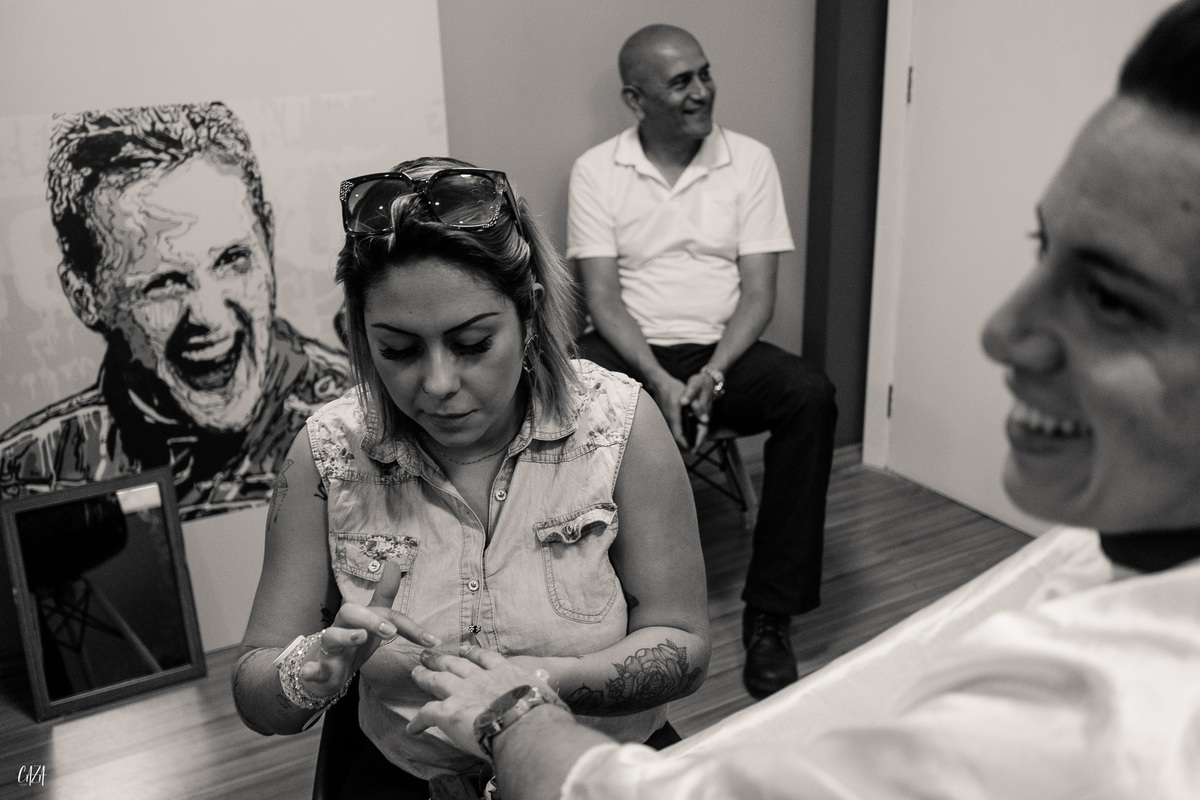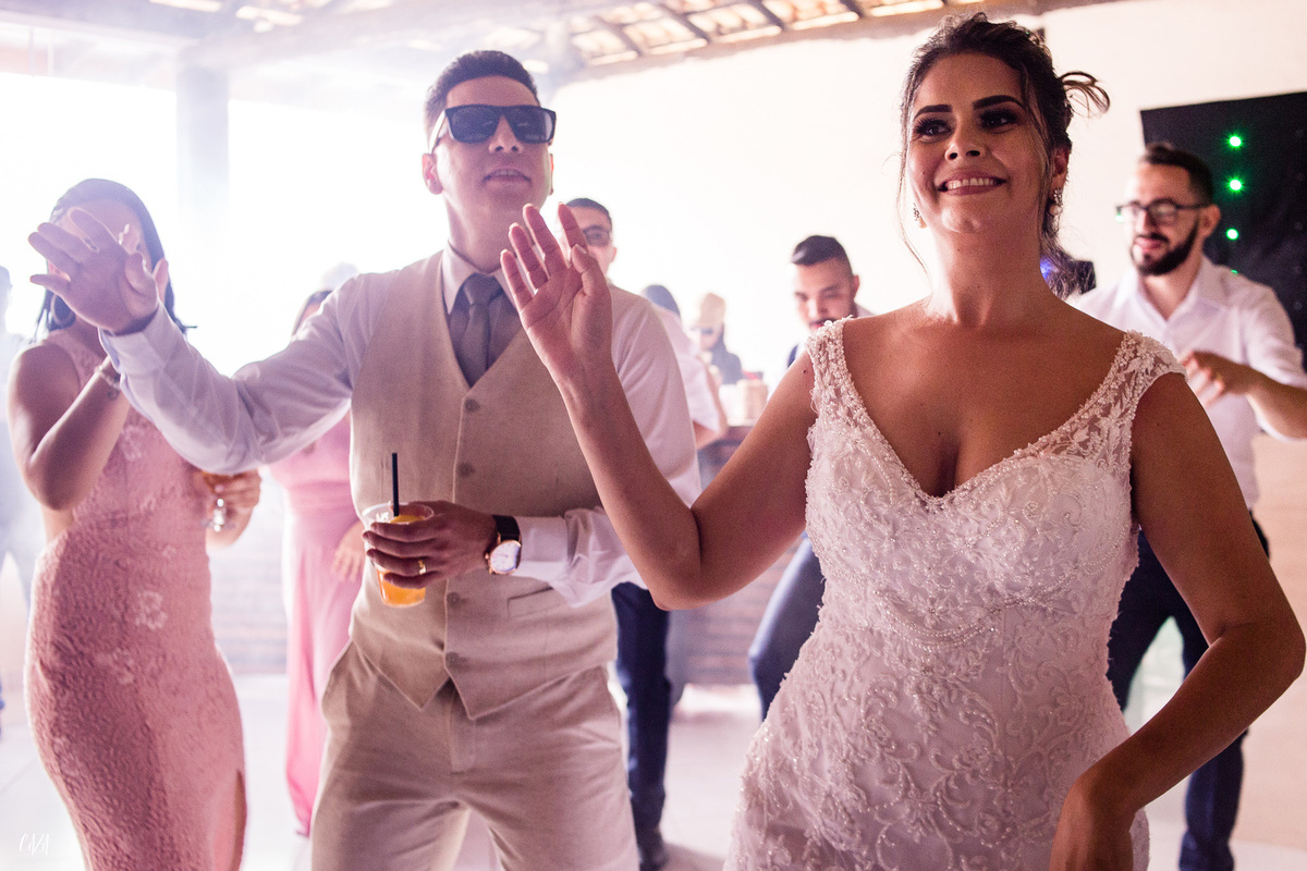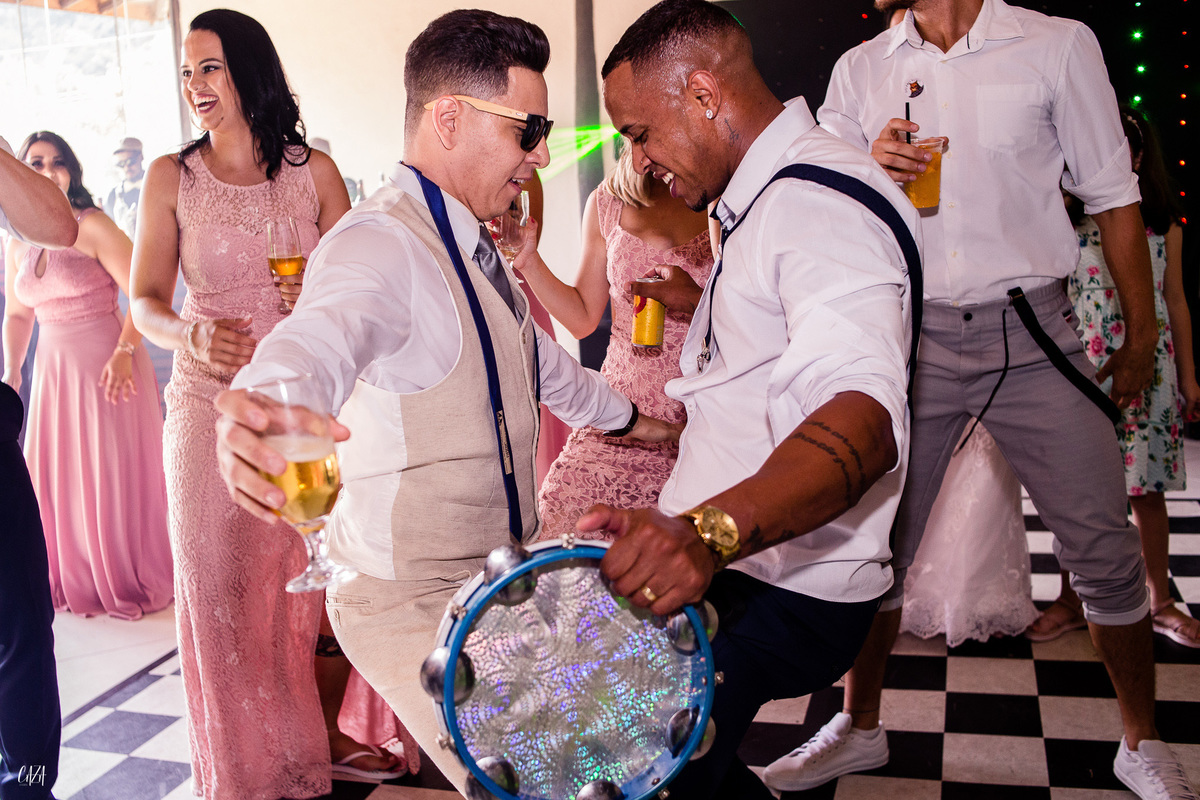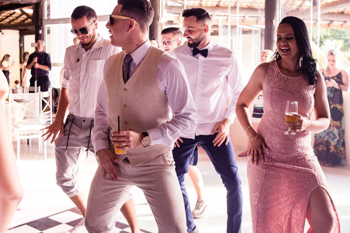 Teve noiva nervosa, teve noivo dançarino, teve padrinhos e madrinhas espetaculares, ou seja, energia boa pra onde você apontasse o olhar.